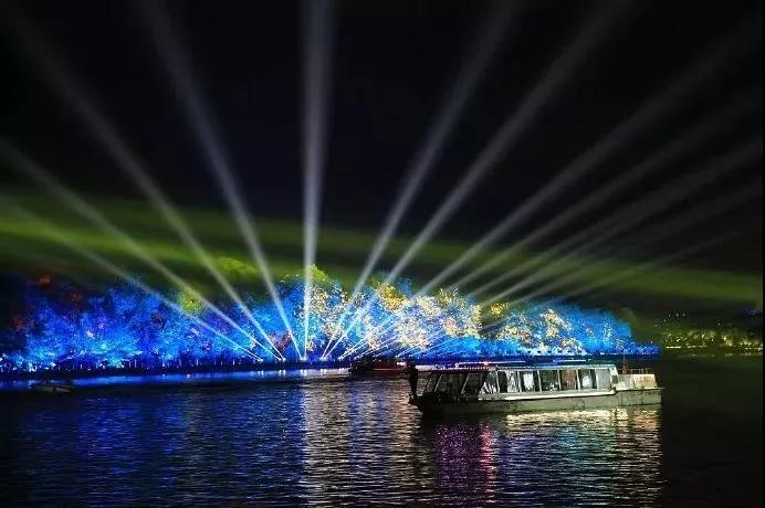 在漓江、杉湖、榕湖、桂湖、木龍湖上同時點亮