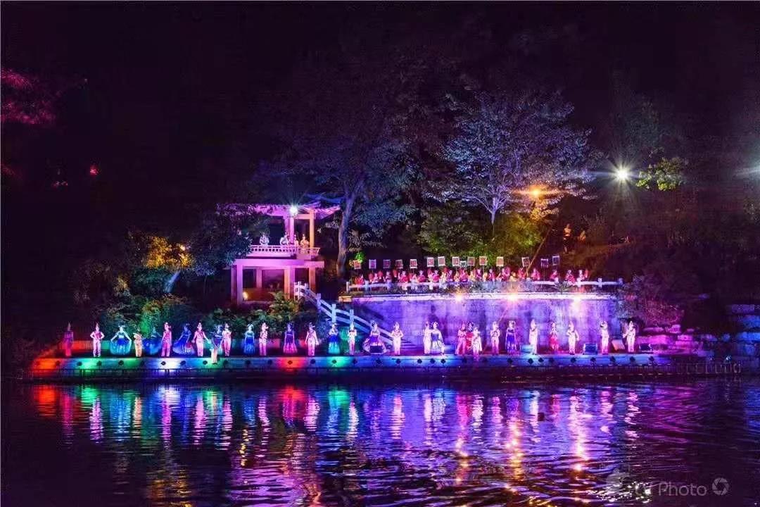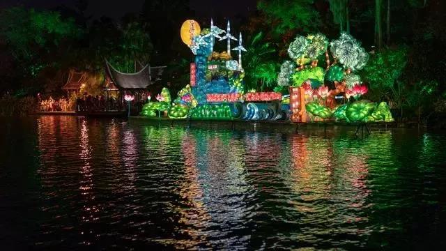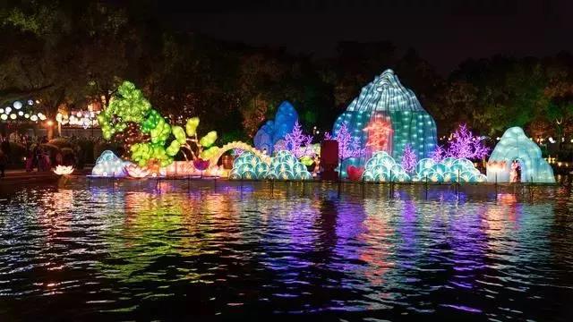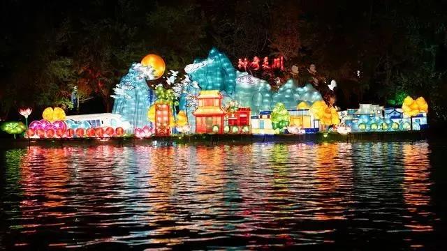 用亮麗的彩燈展示唯美的山水景色
