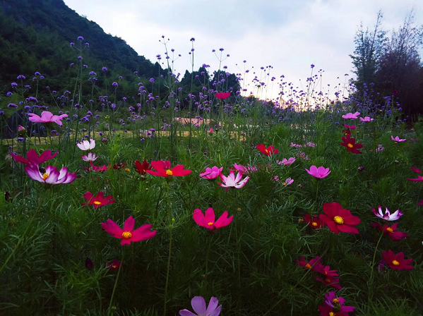 走過(guò)了春的旎旖,迎來(lái)了夏的蓬勃,走進(jìn)大碧頭一棵棵高大的樹(shù)木像一把把綠色的大傘,撐起了一片片濃重的綠蔭。期望能擋住頭頂?shù)难籽琢胰?。給人們帶來(lái)一絲清涼。山腳下小溪邊格?;▋猴L(fēng)柔情長(zhǎng),矮矮的像新娘的捧花,借著格?;ǖ娜崆?。一簇簇紫色淡雅的馬鞭草靜靜地站在花叢中相互輝映。在微風(fēng)中輕盈的搖曳著。像極了新娘頭上隨風(fēng)飄搖的紗巾。把大碧頭這個(gè)"新娘"打扮的格外漂亮。又仿佛一條飄逸的彩帶圍繞著大地景觀。