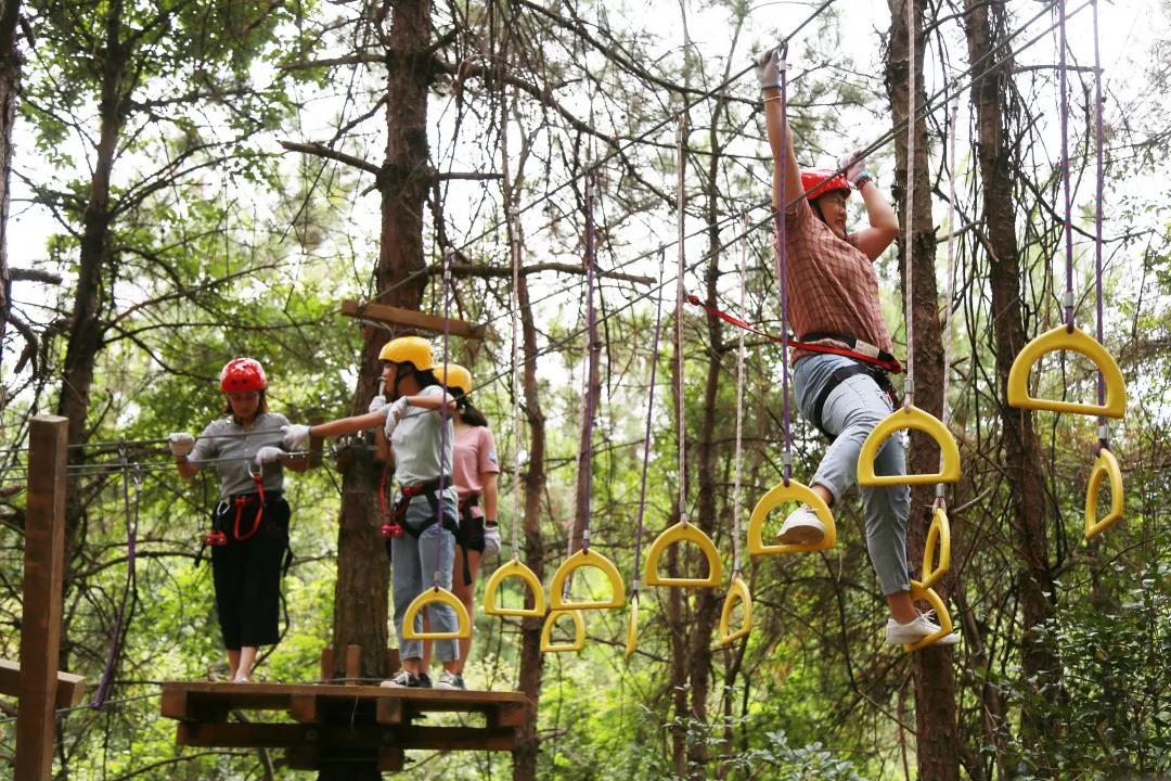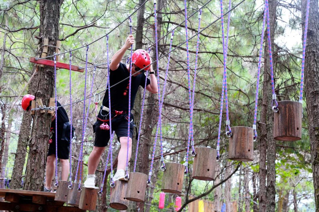通過懸空橋梁、木樁、步道等趣味環(huán)節(jié)