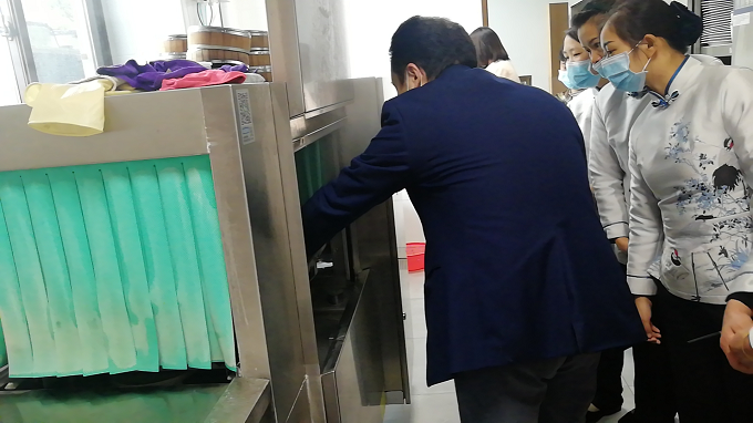 餐飲部正在培訓員工熟悉各類餐具等